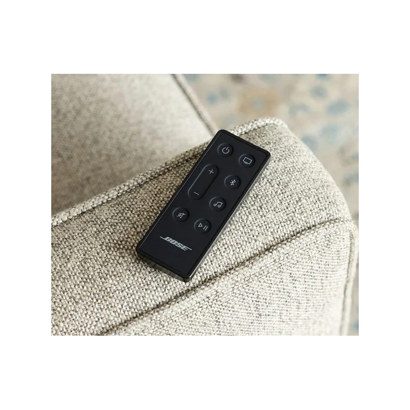 Control remoto: encendido, volumen, silencio, botones de fuente (TV, Bluetooth, Aplicación Bose Music), reproducir/pausar